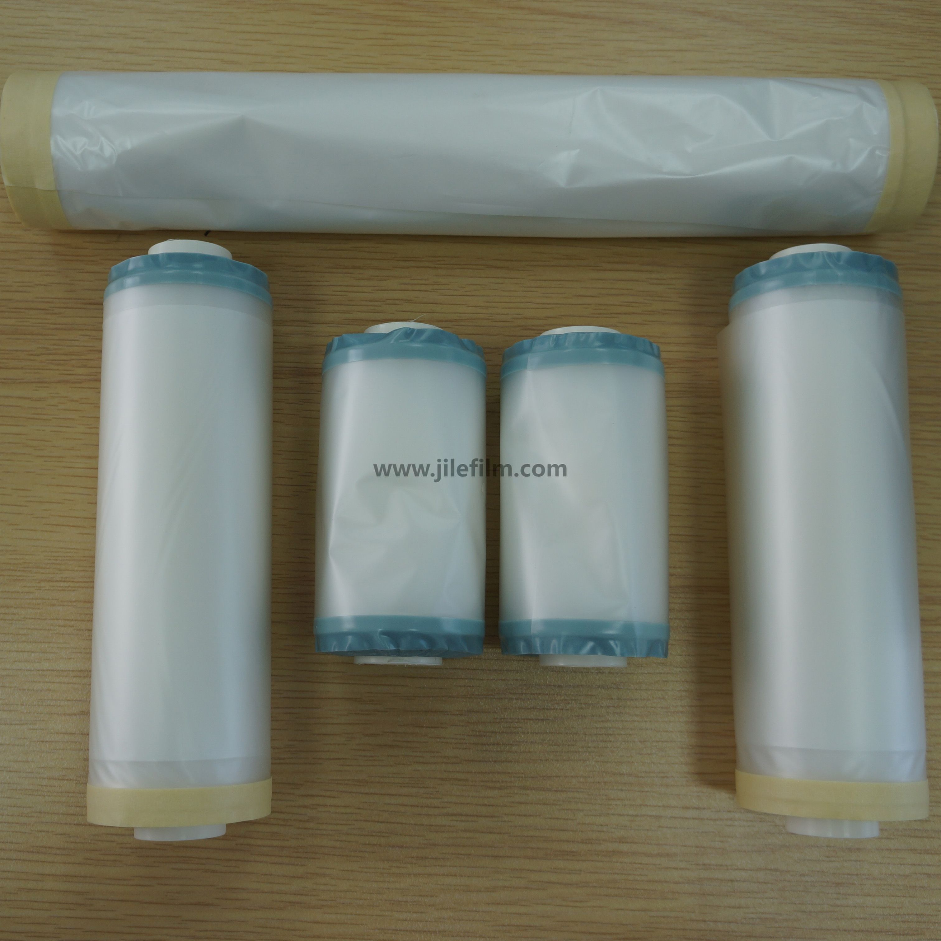 These roll maskers are mainly applied on masking for different painting like car body, bumper, dashboard, train and airplane etc. Both two ends of the roller are laminated with tape, which is convenient to use with quick mask and labor saving. It can resist drying temperature 90~180°C for 30 mins.
