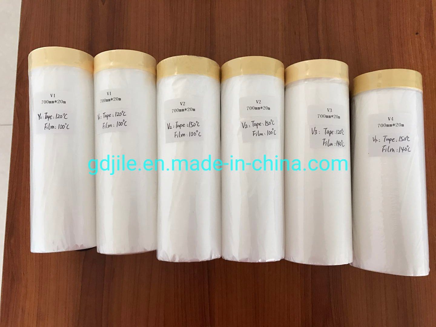 Application: It is mainly used for the protection of car body, bumper and auto parts during spray painting process. The tape can make turns and extend itself in obedience in line with the shape of the objects. Heat-resistance reaches up to 150ºC. The design saves human power and shortens the preparing time for painting. The PE type film has the capability of electrostatic adsorption, which helps the film to attach on the surface of paint.