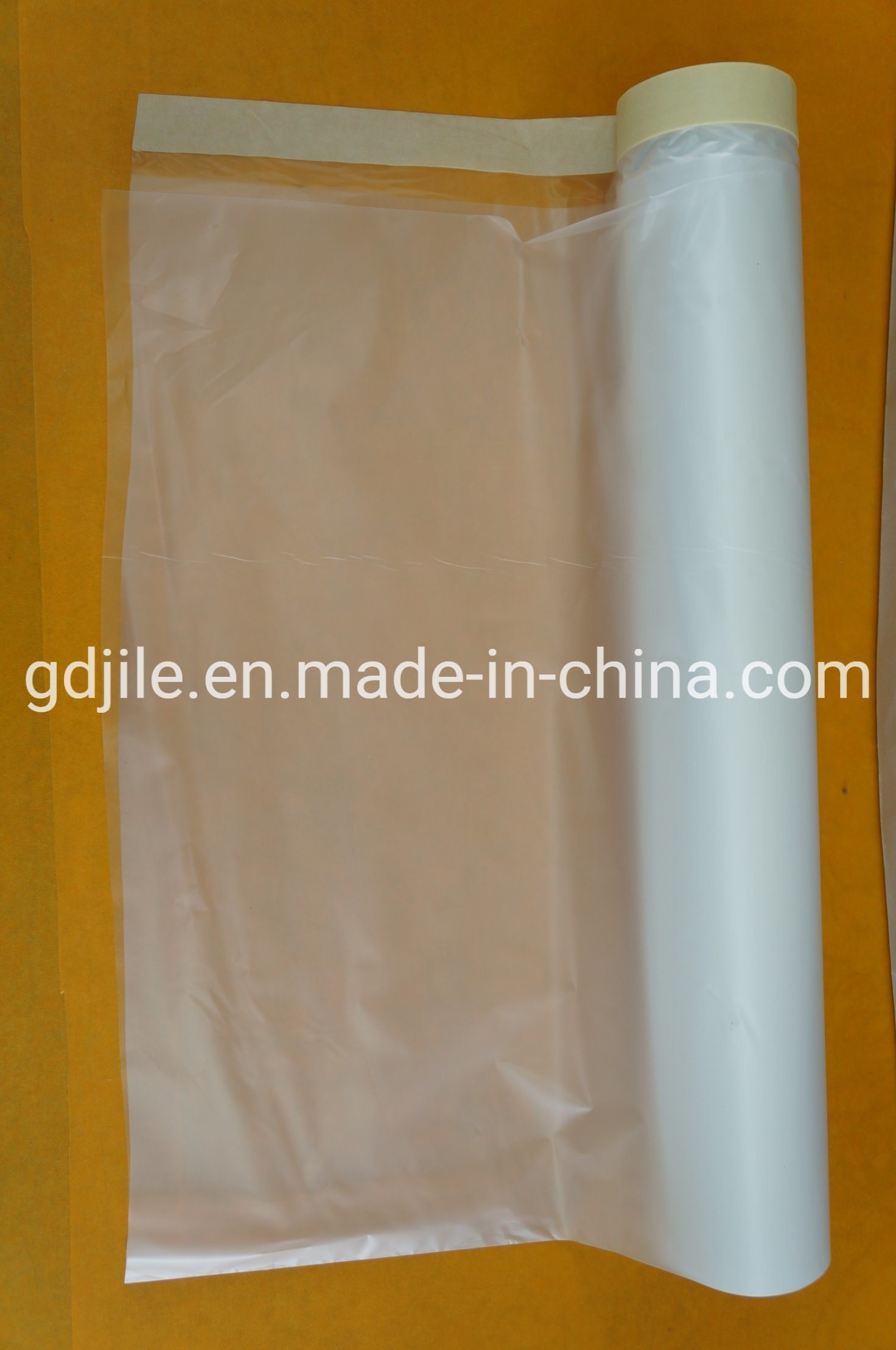 Application: It is mainly used for the protection of car body, bumper and auto parts during spray painting process. The tape can make turns and extend itself in obedience in line with the shape of the objects. Heat-resistance reaches up to 150ºC. The design saves human power and shortens the preparing time for painting. The PE type film has the capability of electrostatic adsorption, which helps the film to attach on the surface of paint.